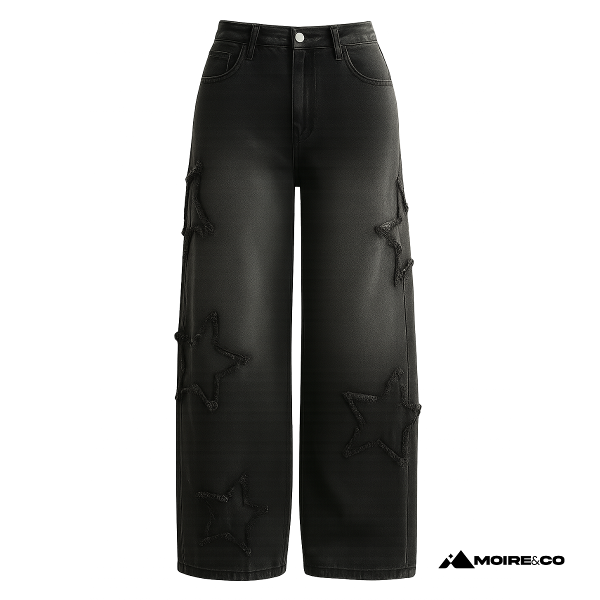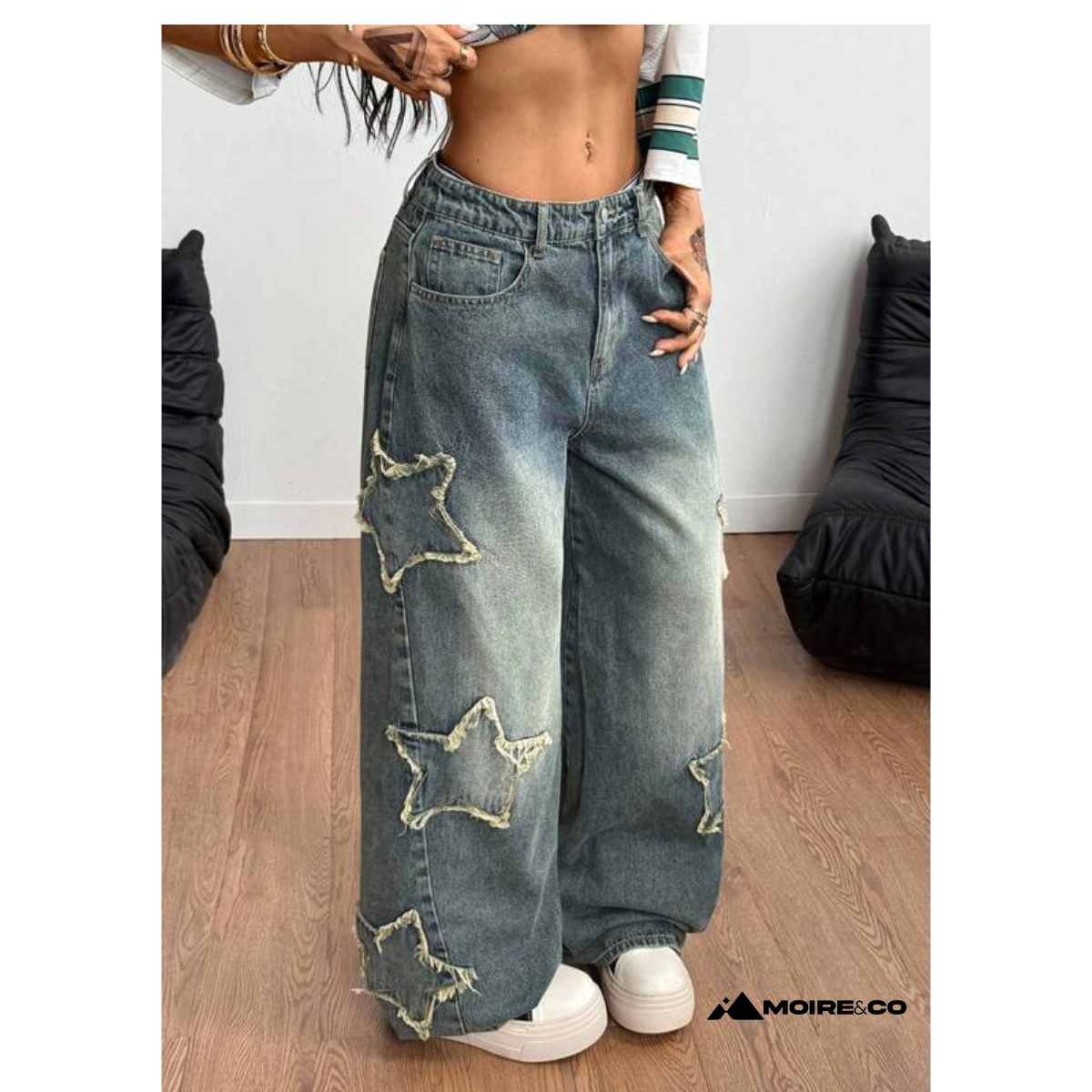 Streetstyle pur! Diese Jeans in verwaschenem Schwarz interpretiert Grunge neu und ist oversized, mit Sternenmuster und perfekt für jede Bewegung. Mehr als nur Denim – hier steckt Attitüde in jedem Detail, ideal für Partynächte, Festivals oder einfach für den Alltag.
