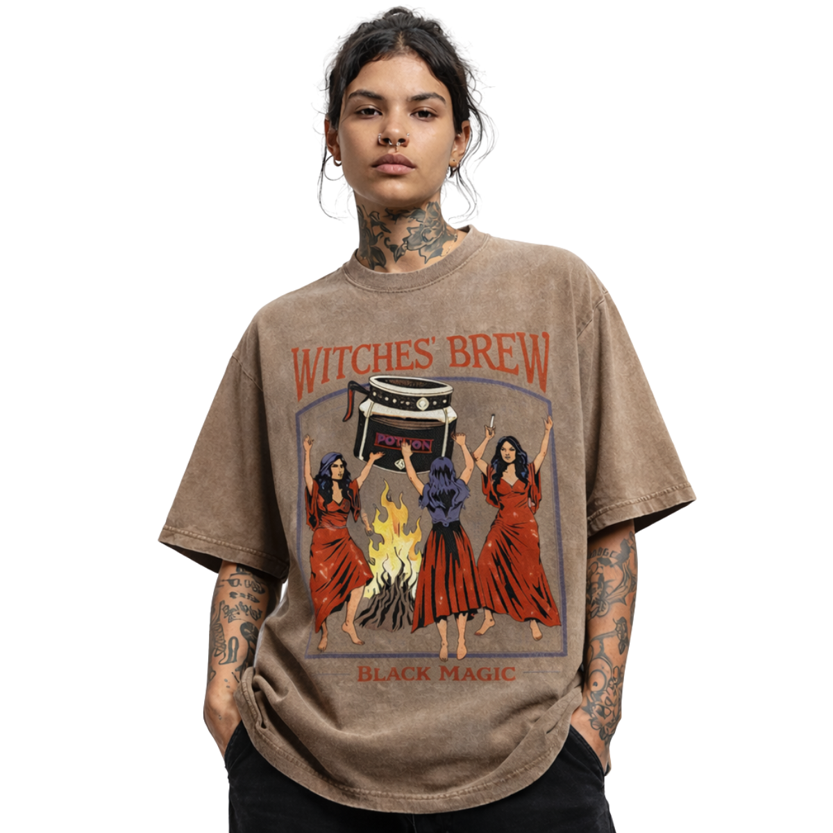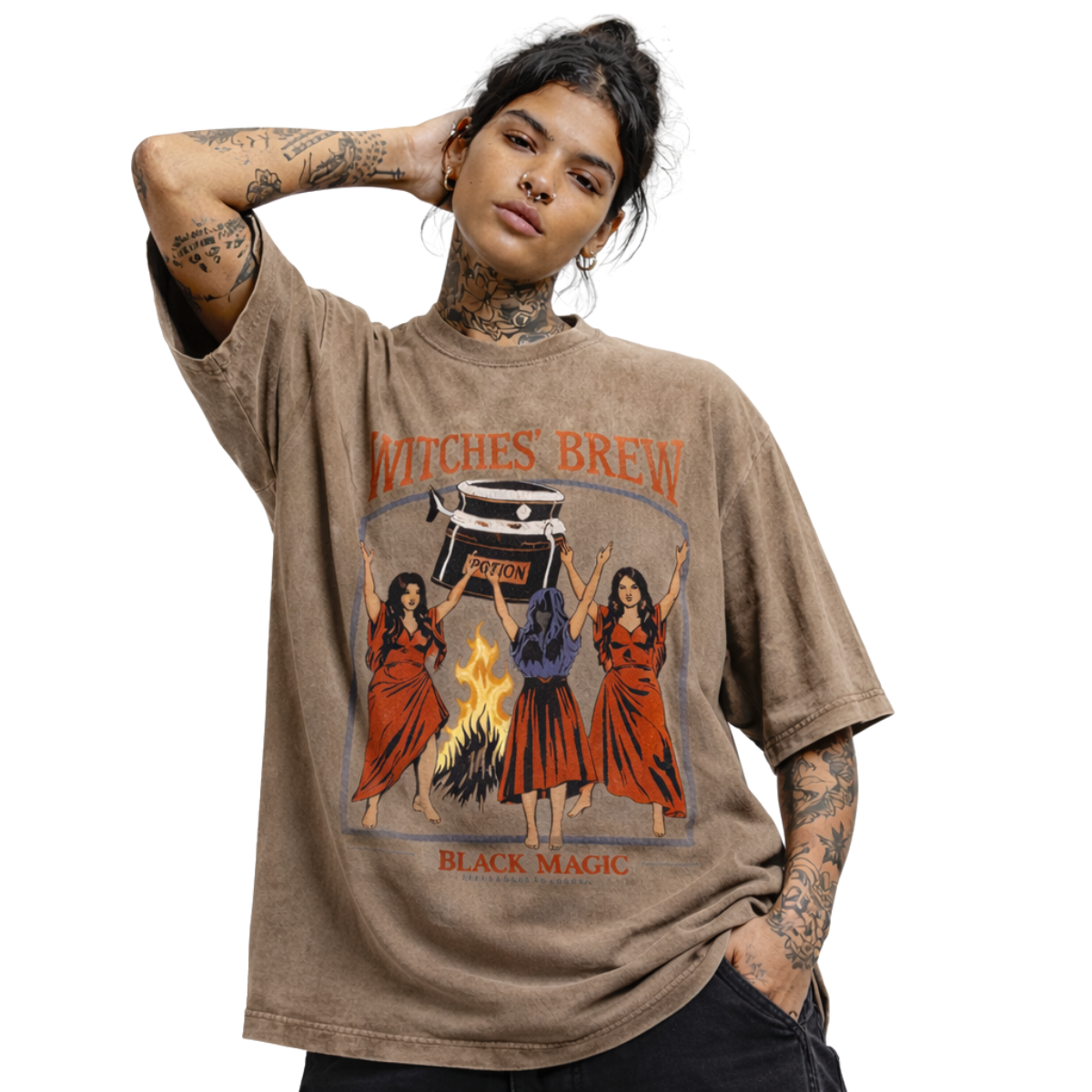 Tauche mit dem Witches' Brew T-Shirt in die Welt der Underground-Kultur ein. Es ist mehr als nur ein T-Shirt; es ist Ausdruck deines einzigartigen Stils und deiner Verbundenheit zur urbanen Szene. Gefertigt aus 100 % reiner Baumwolle, ist es für alle gemacht, die Streetwear leben und atmen.