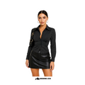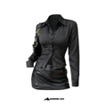 Dulcita Fashionable Contrast Color Textured Button Fitted Waist Flattering Striped Collar Long Sleeve Blouse For Women