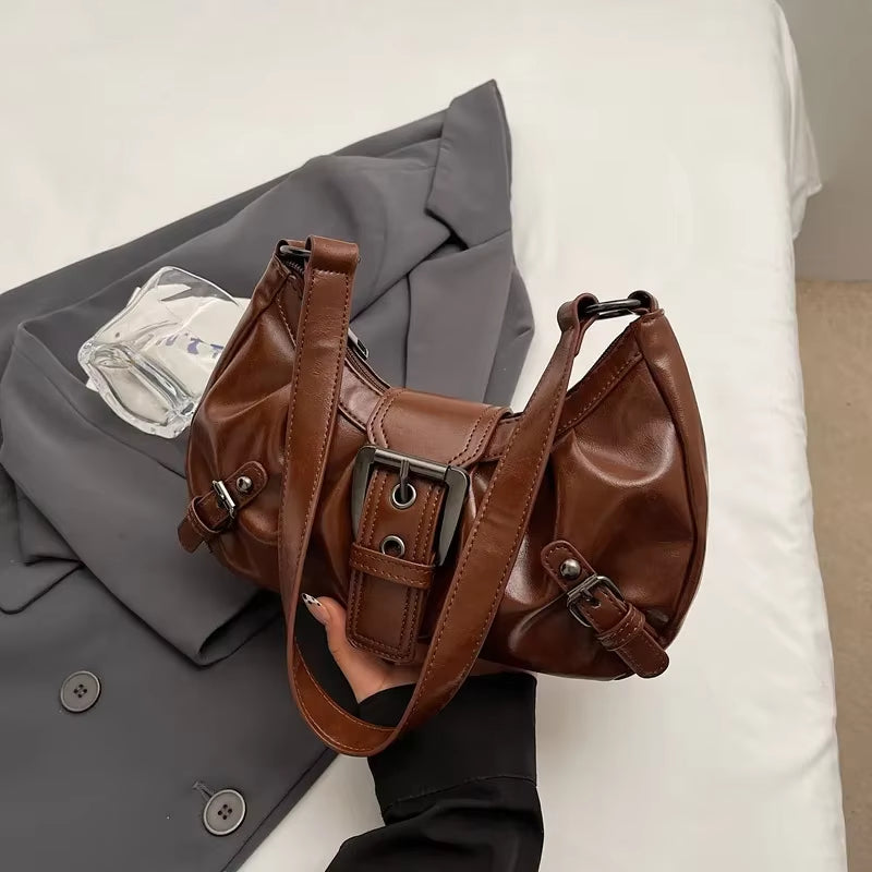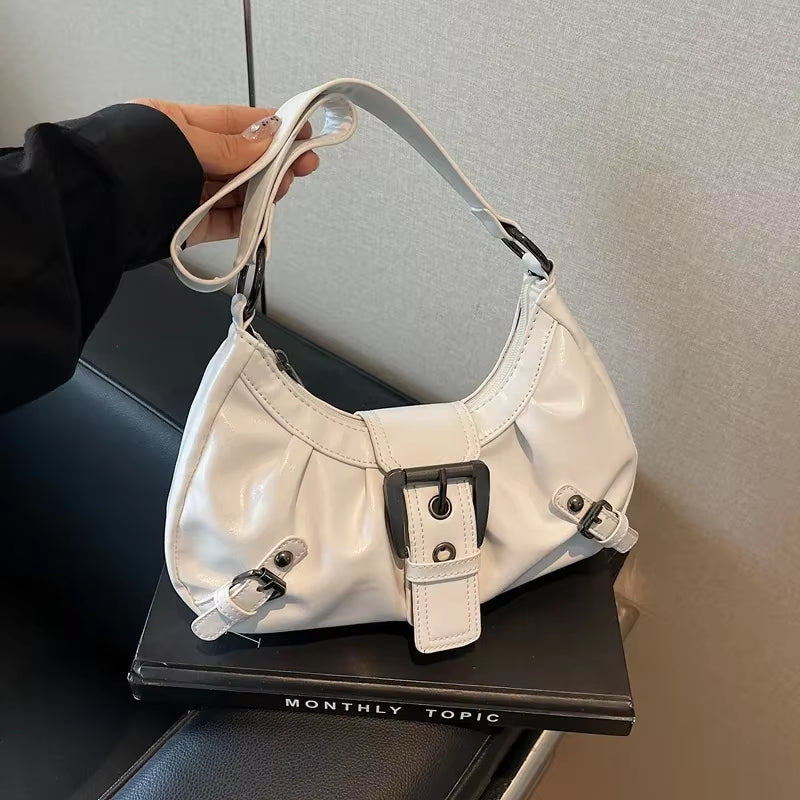 Y2K Retro Style Shoulder Bag, Maillard Pleated Rivet Armpit Bag, Fashionable Ladies Cool Leather Shoulder Bag