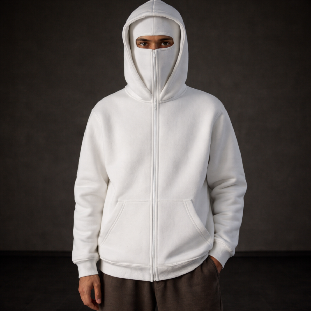Versatile design: Perfect for the street, nights out, or casual settings. The double-zip hood with built-in face cover adds a unique touch, blending style and functionality.
